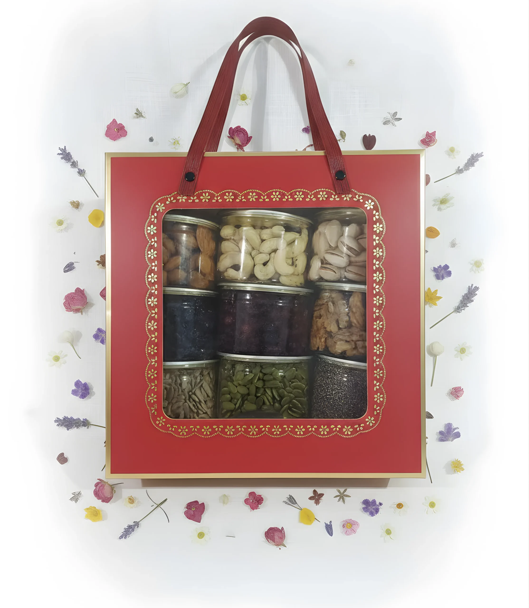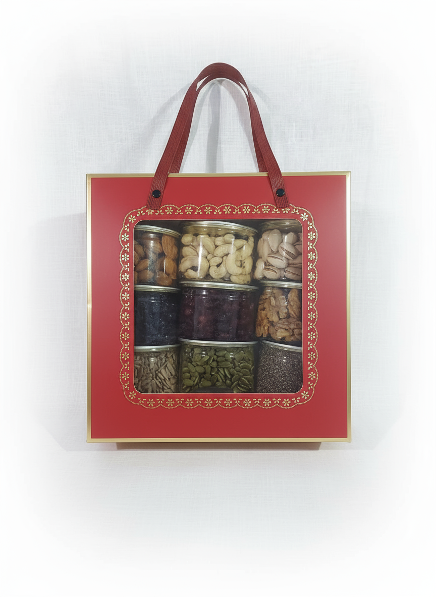 Celebrate every occasion with the NUTGEN 9 Combo Gift Hamper, a premium collection of handpicked dry fruits, nuts, and healthy snacks packed beautifully for gifting. Thoughtfully curated to offer variety, taste, and nutrition, this hamper is perfect for festivals, weddings, corporate gifting, birthdays, and special moments. Each item is hygienically packed to ensure freshness, quality, and superior taste—making NUTGEN’s 9 Combo Gift Hamper a wholesome and elegant gift choice.