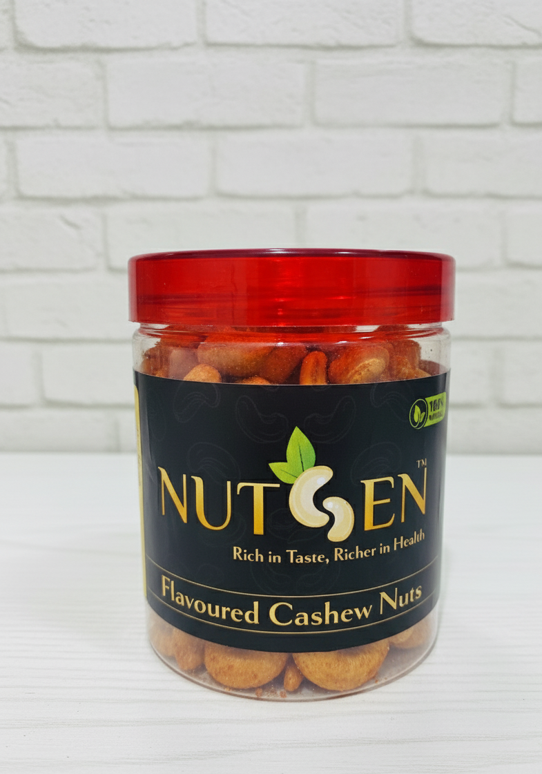 Turn up the heat with NUTGEN Red Chilli Cashews, made from premium-quality cashews roasted and coated with fiery red chilli seasoning. Crunchy, bold, and flavour-packed, these cashews deliver the perfect balance of spice and creaminess. Ideal for snacking, parties, travel, or when you crave a spicy treat, NUTGEN Red Chilli Cashews offer irresistible taste with wholesome nutrition in every bite.